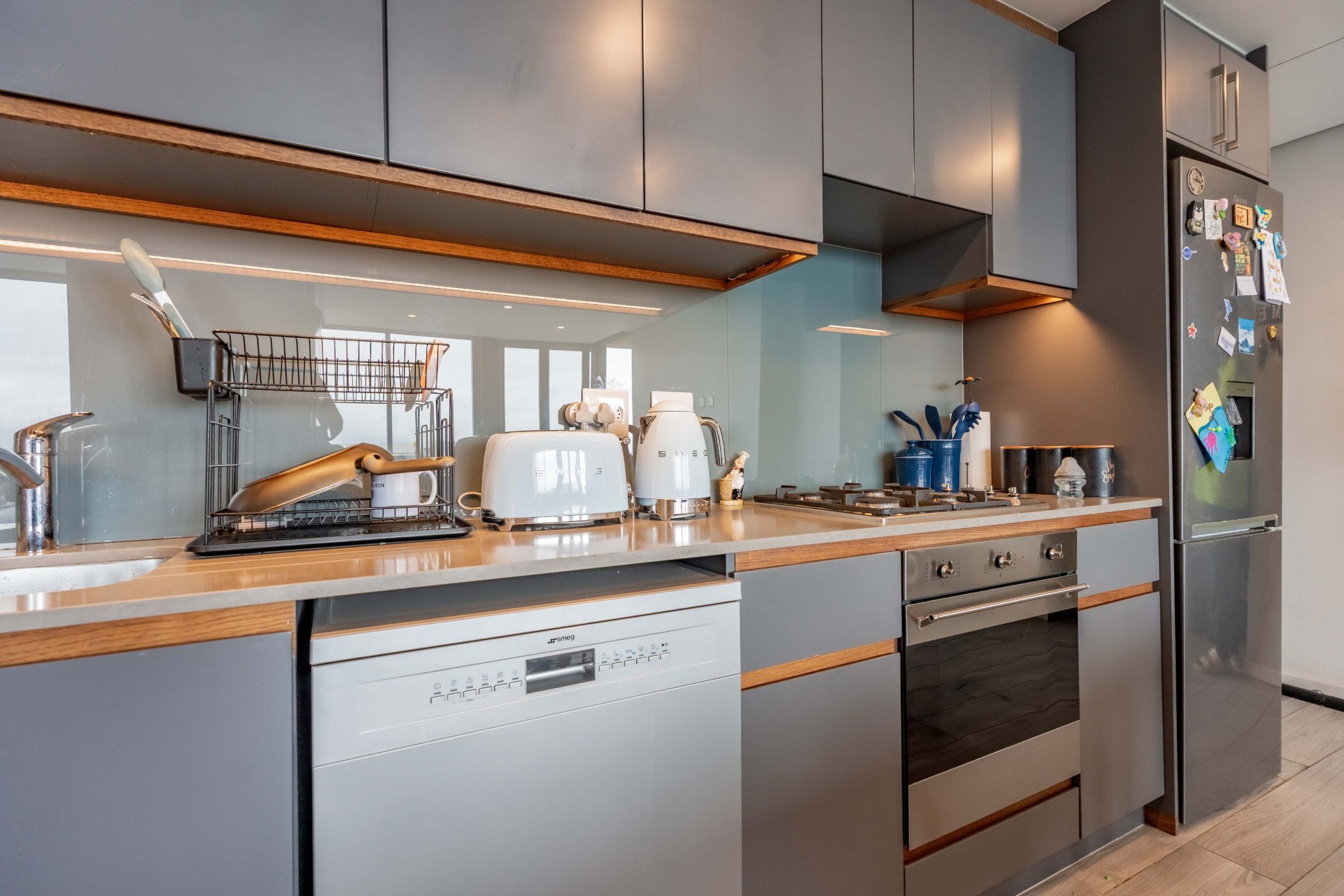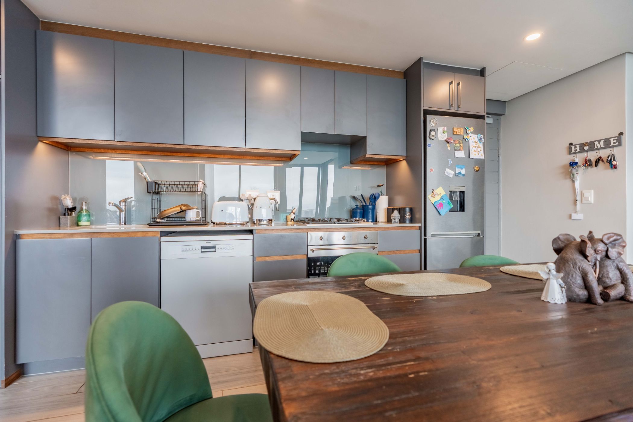 Modern Coastal Luxury in the Heart of Umhlanga. Stunning 2-bedroom, 2.5-bathroom modern apartment offering beautiful sea and distant harbor views, perfectly positioned in the vibrant heart of Umhlanga. Step into a bright, elegant living space flooded with natural light through expansive glass windows that frame breathtaking ocean views from every room. The open-plan layout flows seamlessly to a lovely balcony, ideal for morning coffee or evening sundowners while enjoying the coastal breeze. The contemporary kitchen is a chef’s delight, featuring Caesarstone countertops, a SMEG oven and gas hob, and space for two appliances.