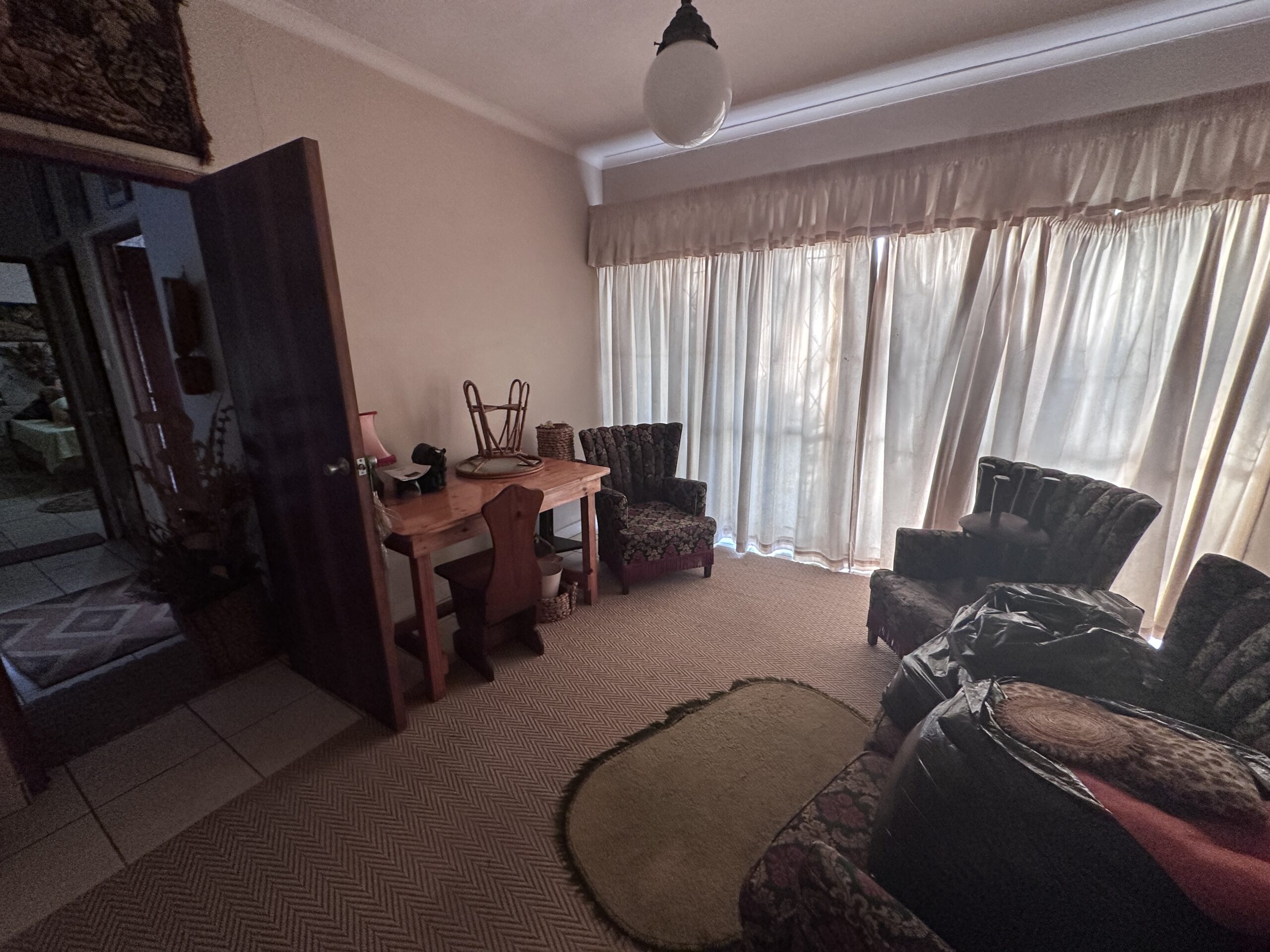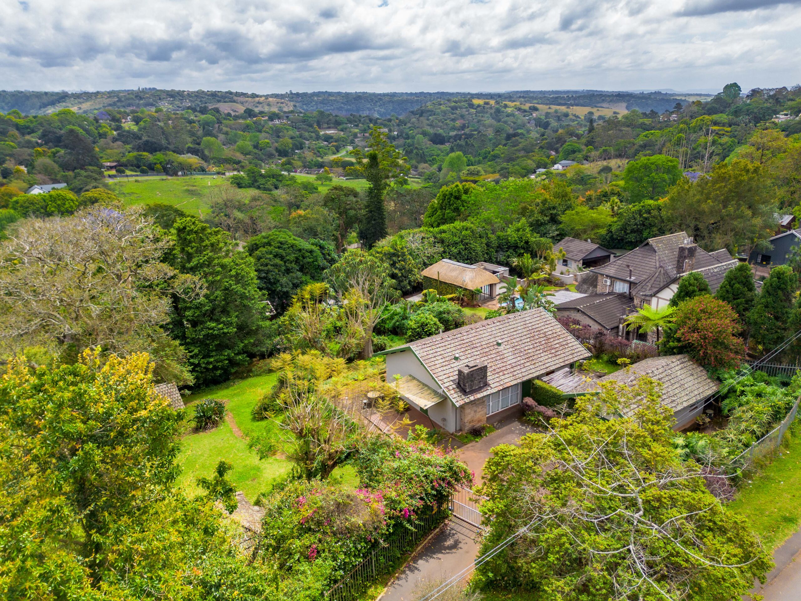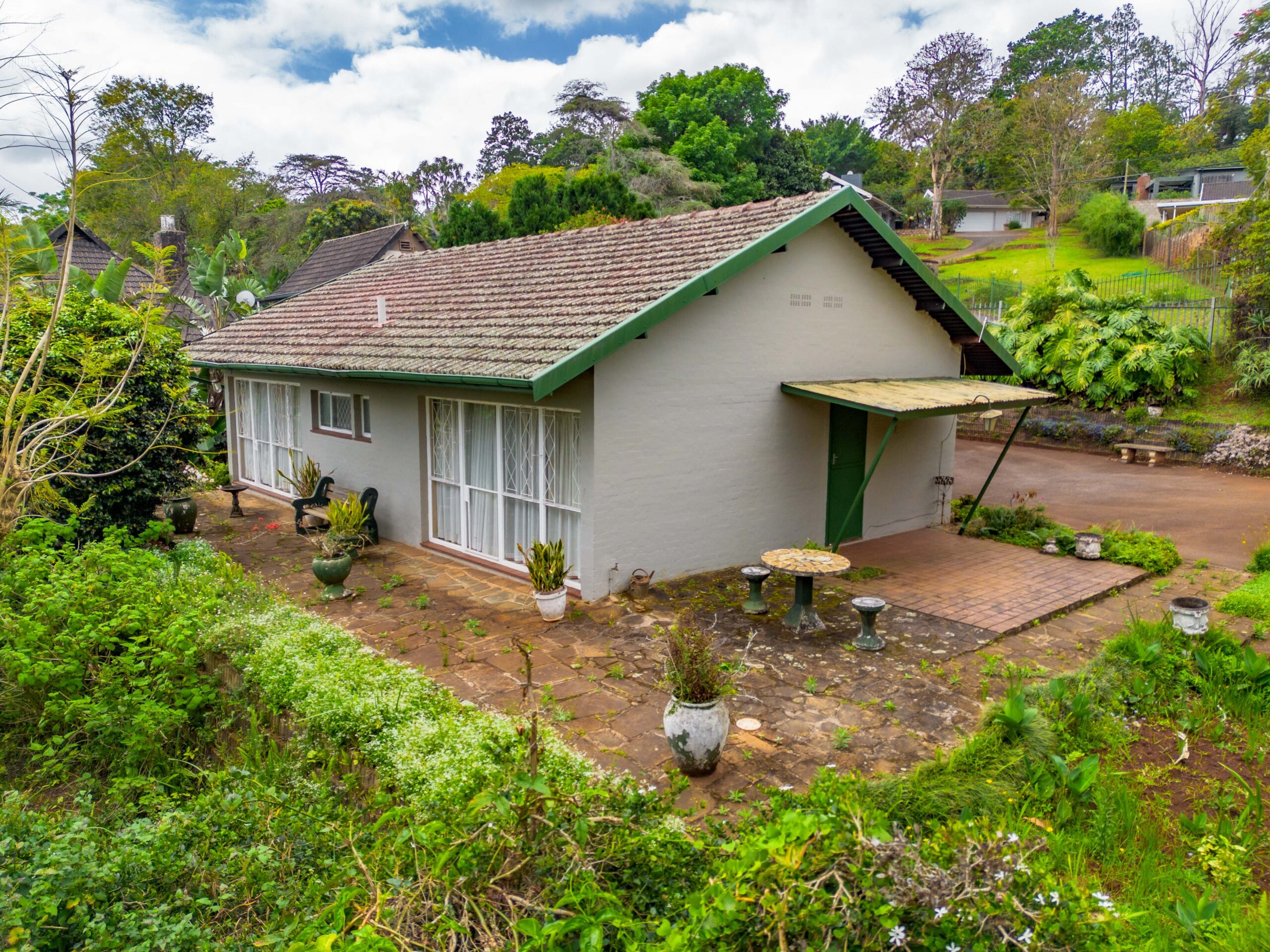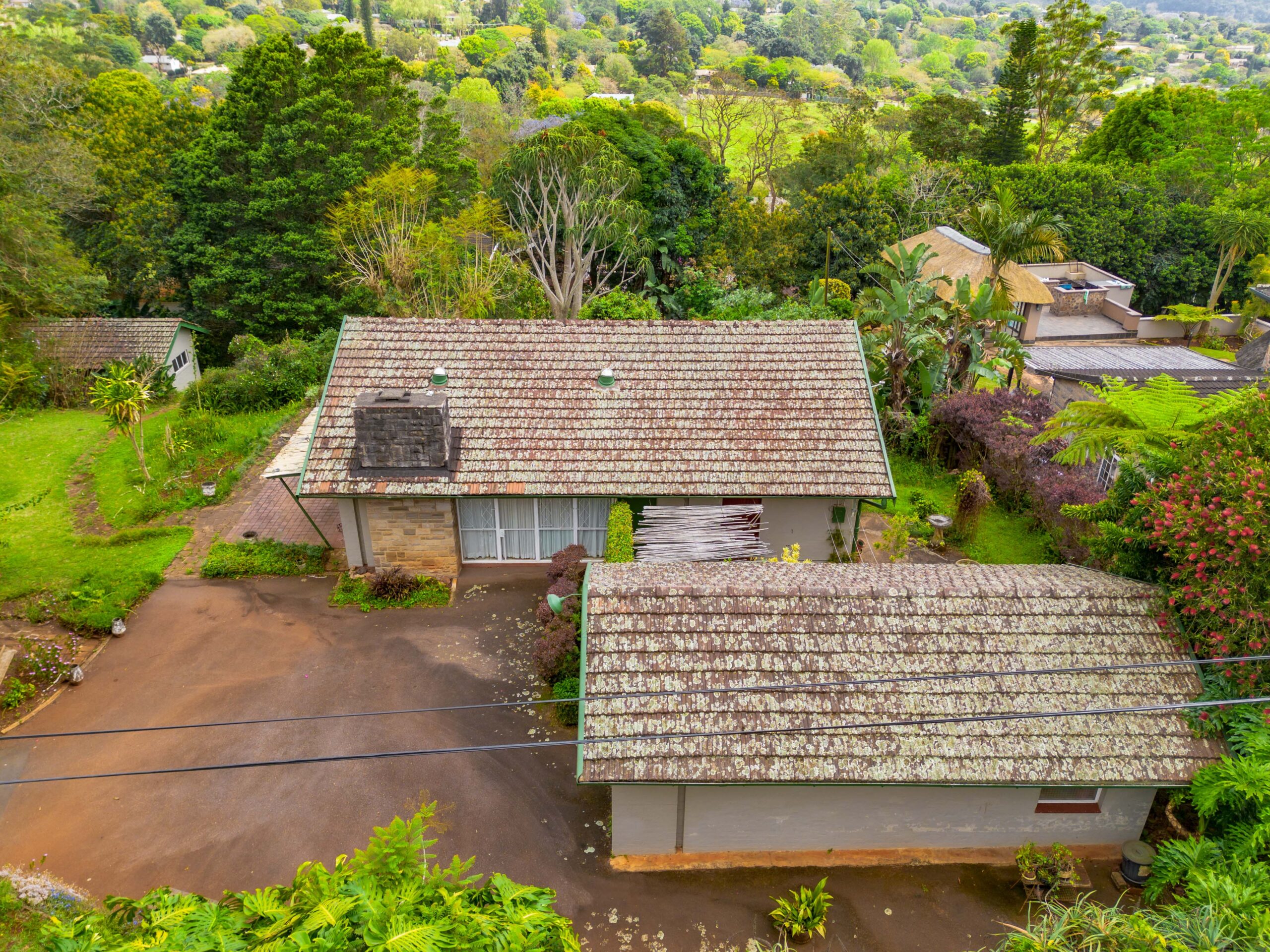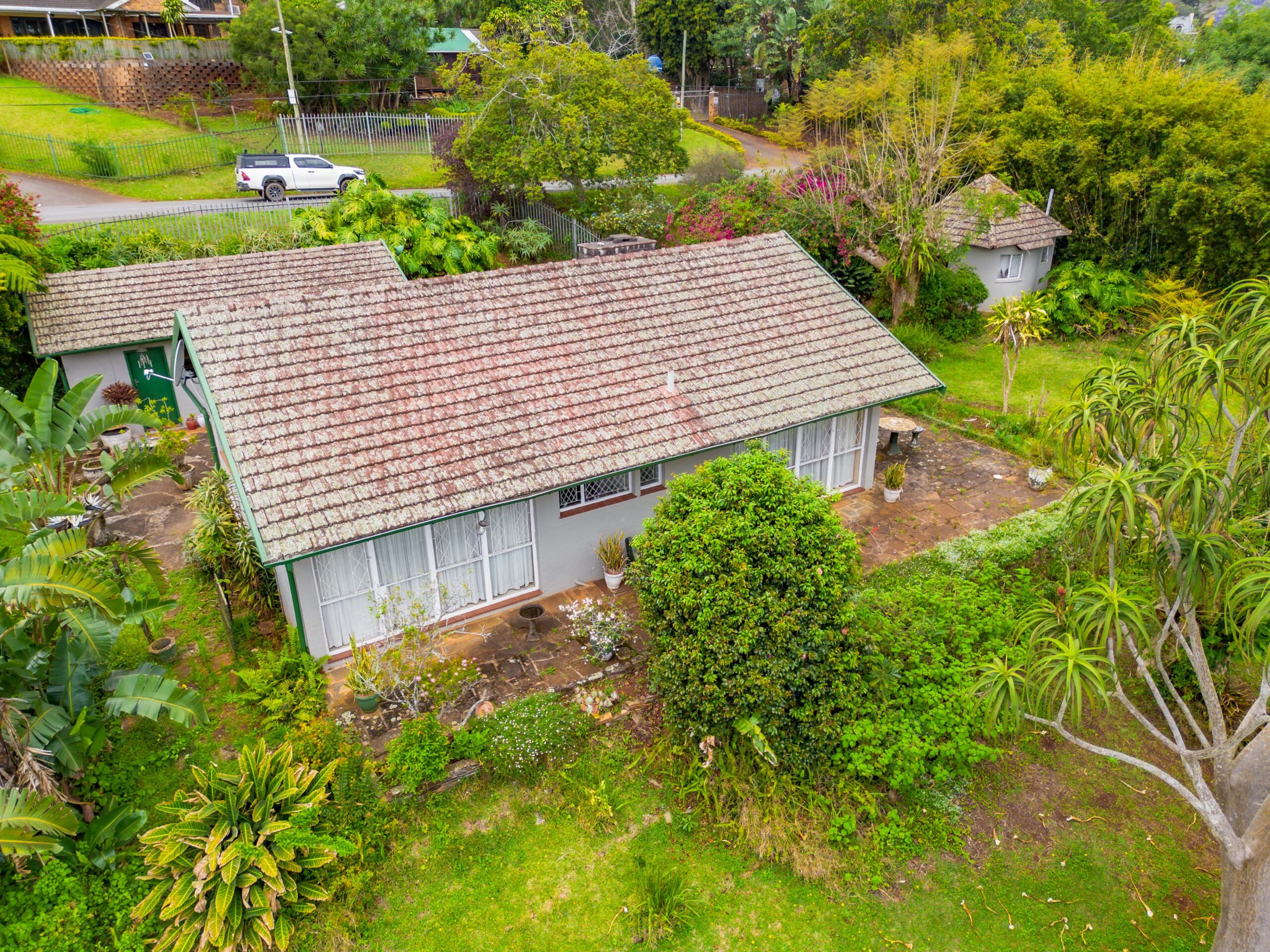 The subject property is situated below road-level and comprises of a 2-bedroom, 1 bathroom residence with a lounge, kitchen and dining room with a single garage and laundry room, a 1 bedroom rondawel with a shower and toilet and a further storage room and tool shed. The property is secured by galvanized steel fencing with access via automated gate to a tarred driveway.