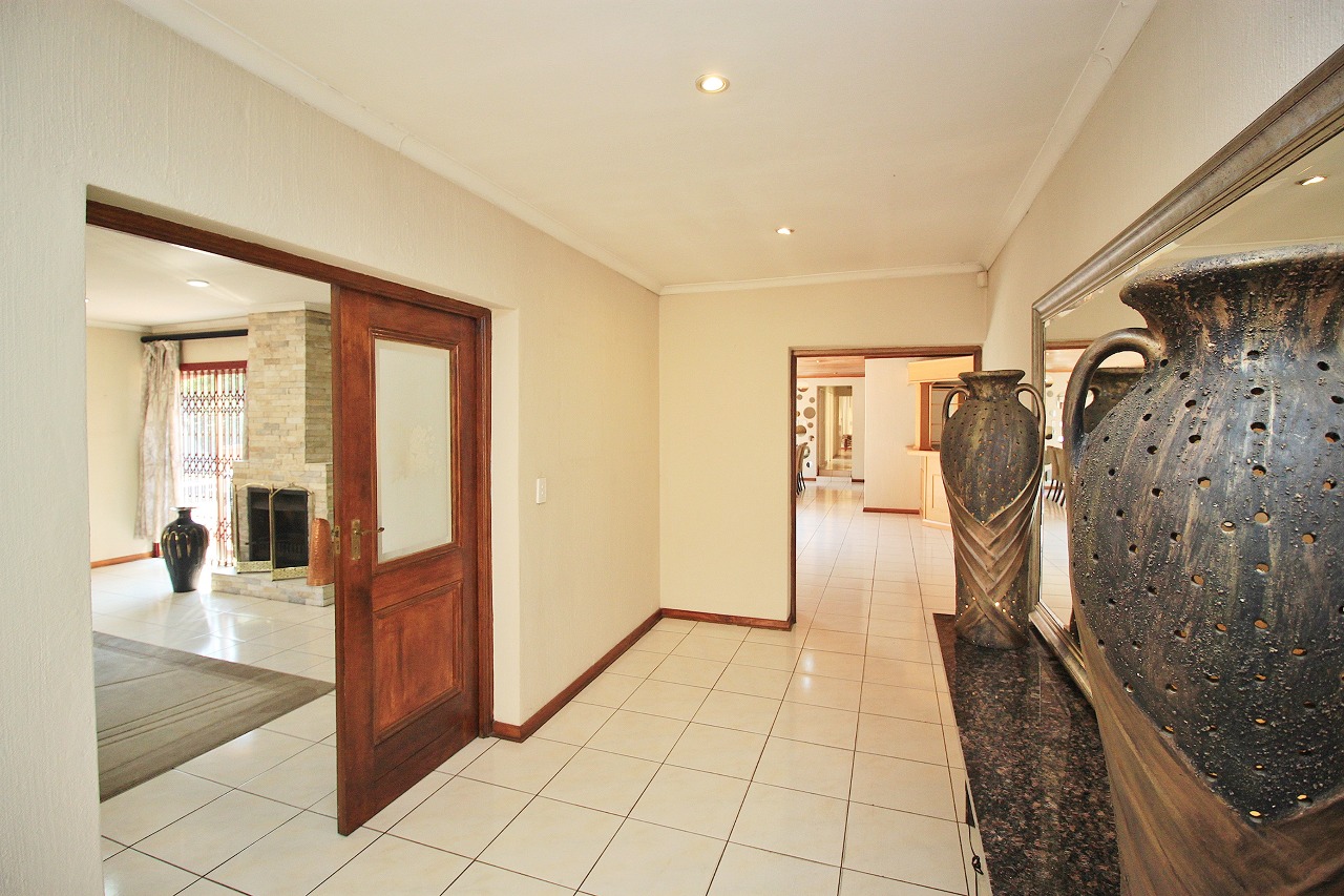 Prestigious Family Residence with Exceptional Commercial Potential – A Rare Find in a Prime Location. Welcome to a refined lifestyle opportunity where luxury living meets strategic investment. Perfectly positioned in a highly sought-after, upmarket neighborhood surrounded by successful businesses and commercial activity, this elegant home offers the best of both worlds — a spacious family haven today, and a potential business premises tomorrow. Features that Define Sophistication & Versatility: 3 Luxurious Bedrooms Each generously proportioned, bathed in natural light, and fitted with quality built-in cupboards., 2 Contemporary Bathrooms Designed with premium finishes and stylish modern fittings for comfort and elegance, Private Study The ideal space for a home office, library, or executive workspace., Elegant Fitted Bar Entertain in true style with your own built-in bar, perfect for hosting guests, Gourmet Kitchen with Scullery, Fully equipped with high-end appliances, sleek cabinetry, and practical flow — designed for effortless cooking and entertaining, Multiple Living Areas.