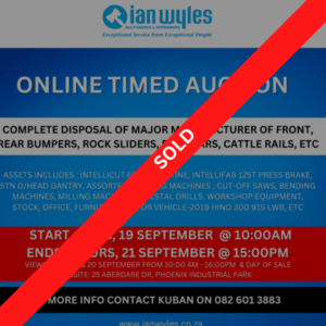 ENDING – 10 NOVEMBER 2022 @ 15:00PM VIEWING – 7 – 9 NOVEMBER 2022 AT 25 ABERDARE DRIVE , PHOENIX, INDUSTRIAL PARK ( BY APPOINTMENT