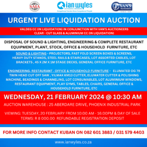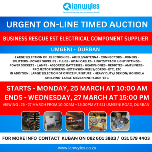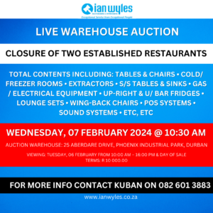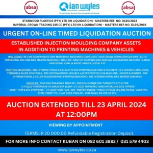 LIQUIDATION ONLINE TIMED AUCTION – DISPOSAL OF RECOGNISED ABATTOIR ASSETS – THURS, 30 MARCH 2023 @ 15:00PM
